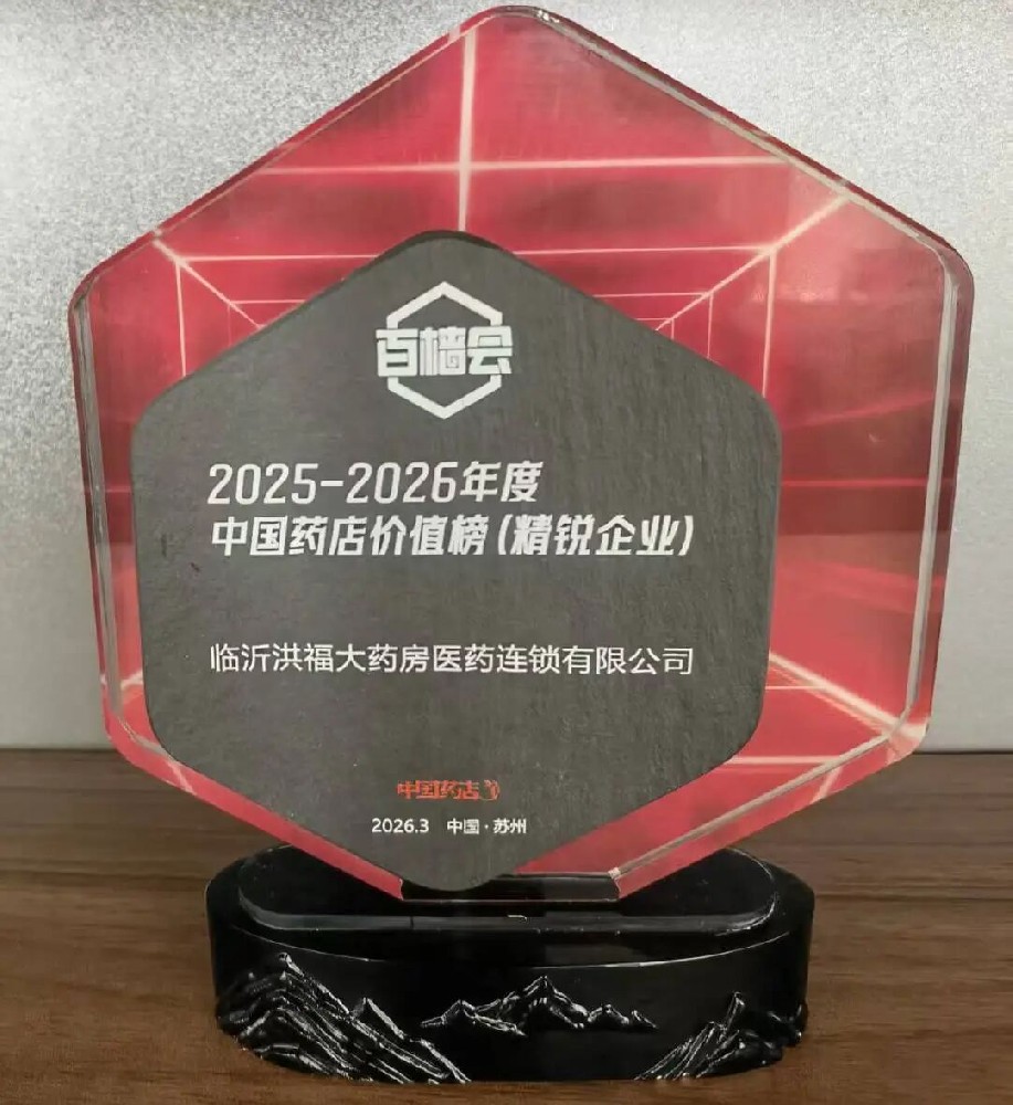 喜報(bào)傳來!2026年3月21日,臨沂洪福大藥房醫(yī)藥連鎖有限公司憑借卓越的經(jīng)營實(shí)力與行業(yè)影響力,成功榮獲百檣金獎(jiǎng)·2025···